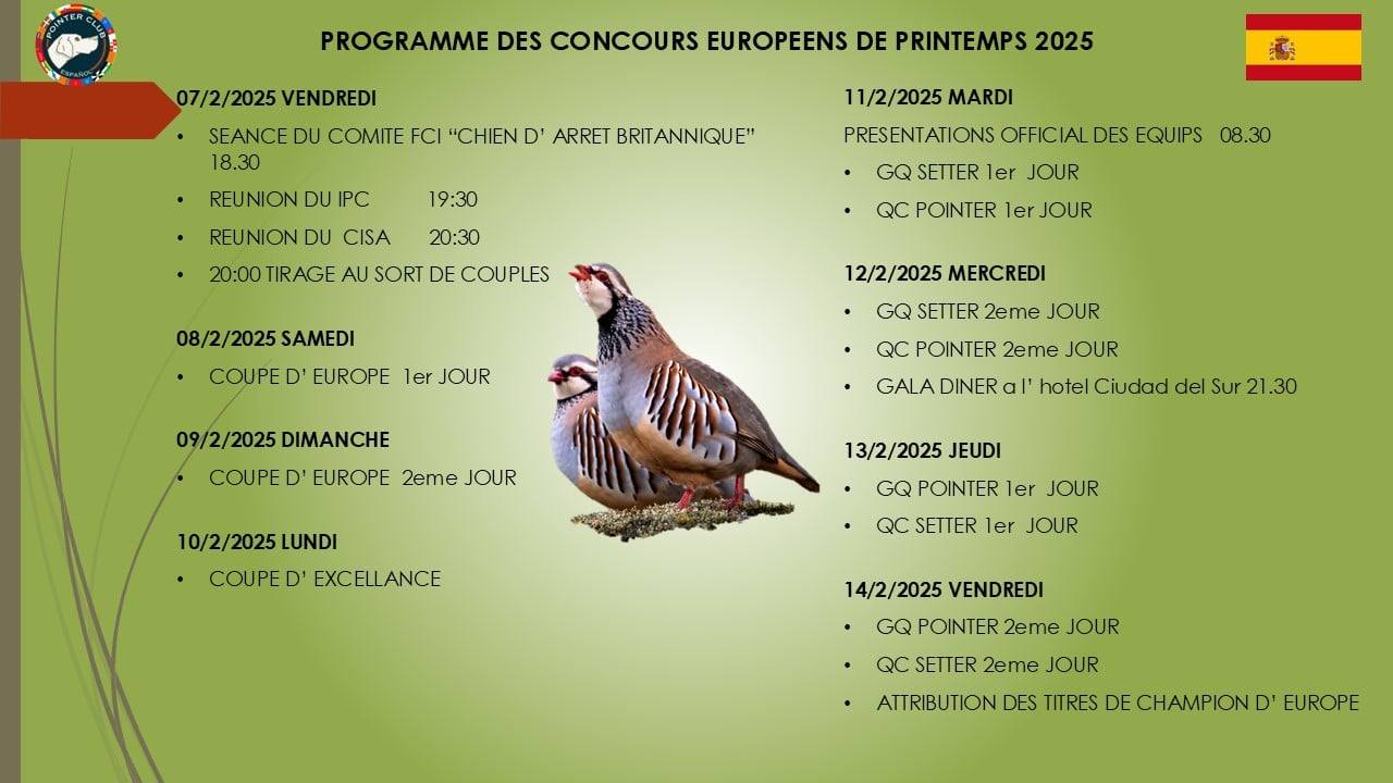 PROGRAMME CHAMPIONNATS D EUROPE ET COUPE D EUROPE PRINTEMPS 2025
